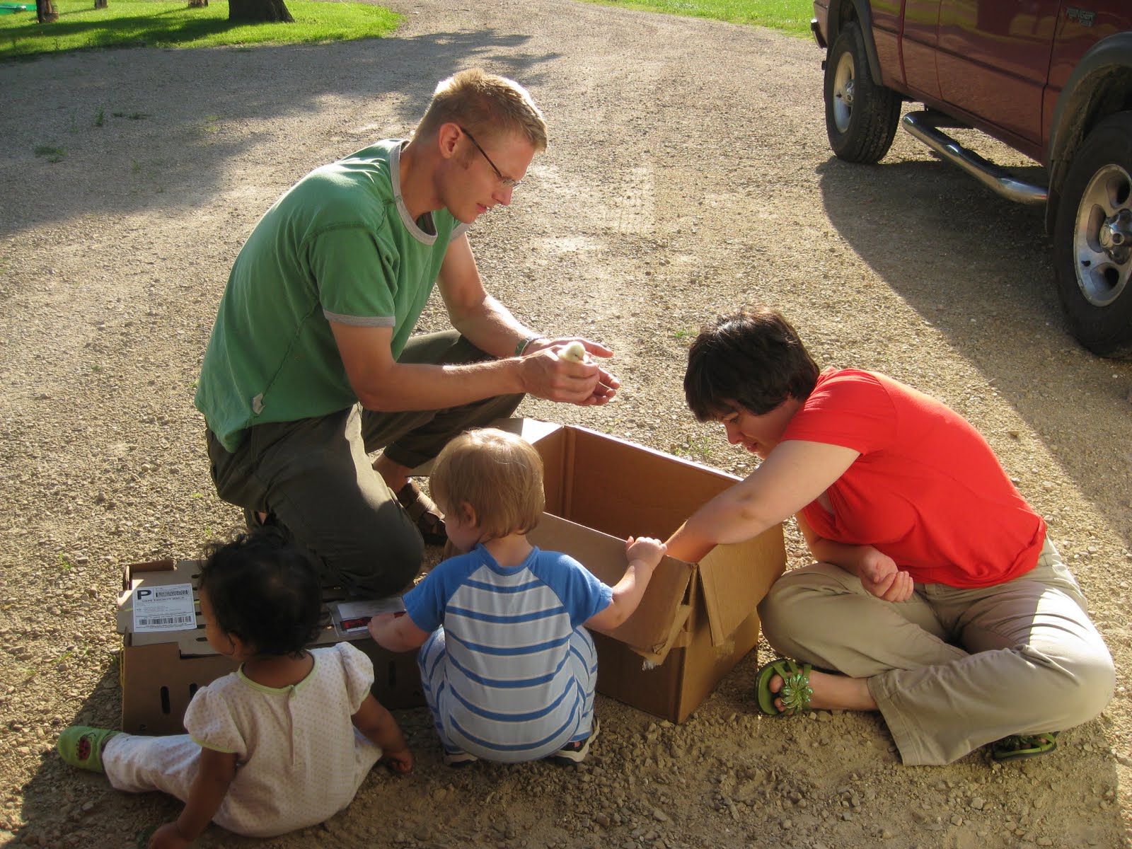 O.K., this first one is actually in WV on 29 June. We packed up that day and this is our last family photo before we left. After working my last day of residency at the free clinic on 30 June, left early afternoon, and left Huntington by 3 p.m., driving half way and staying the night in IN. We arrived in RC, WI on July 1, but wouldn't close on our house till the next morning, so we had to stay in a local hotel.